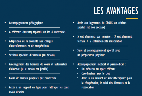 Afin de pouvoir concilier pratique sportive à haut niveau et études supérieures, les étudiants sportifs de haut niveau (E SHN) des CUFE bénéficient d’un dispositif d’accompagnement exceptionnel.